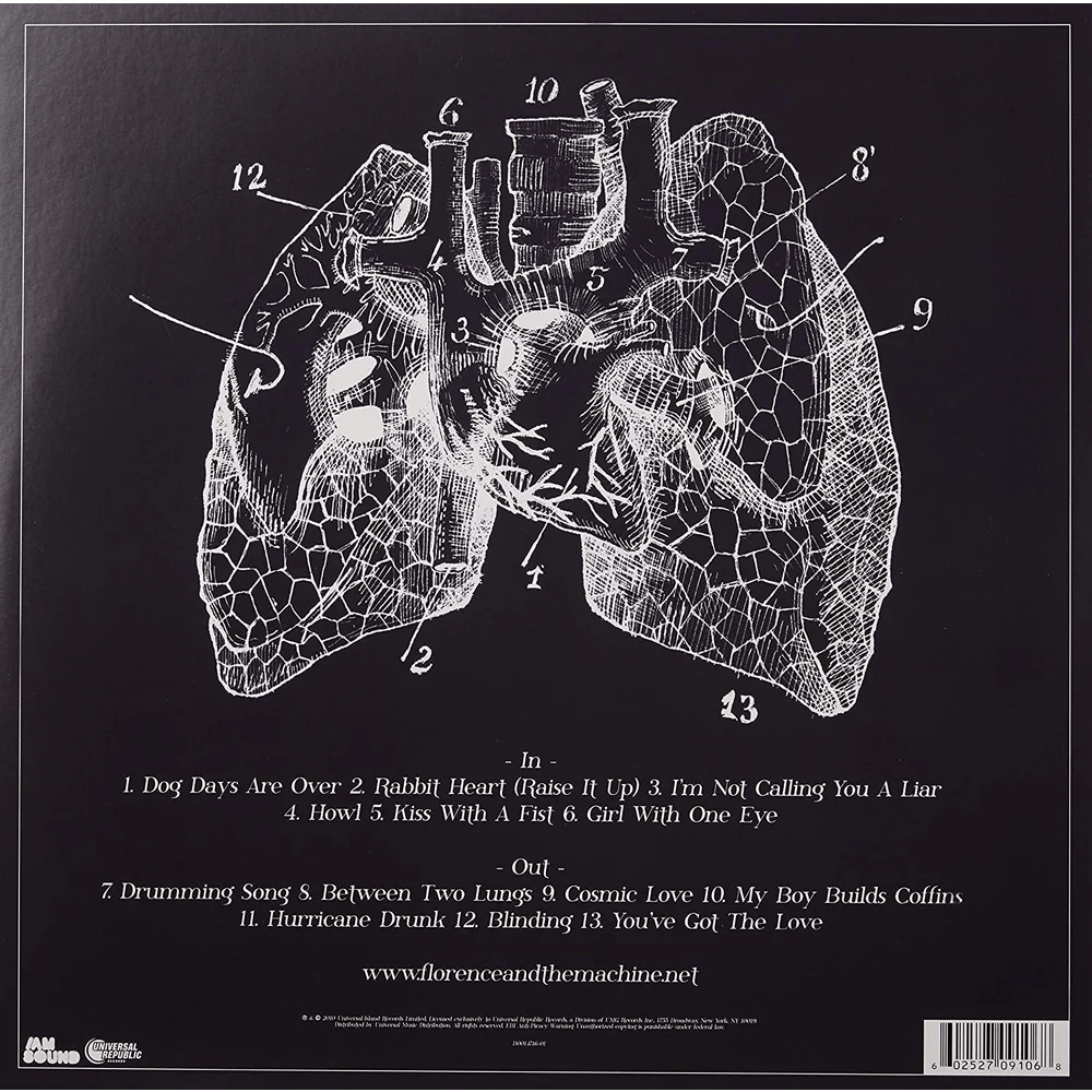 Los temas cumbres de este primer álbum serian dos: Kiss With a Fist y Dog Days Are Over. El primero lo pudimos escuchar en películas como Jennifers Body o Wild Child, mientras que el segundo apareció en la serie británica adolescente más vista por mi generación: Skins. Las letras eran bastante traumáticas, pero el TV show lo era más.