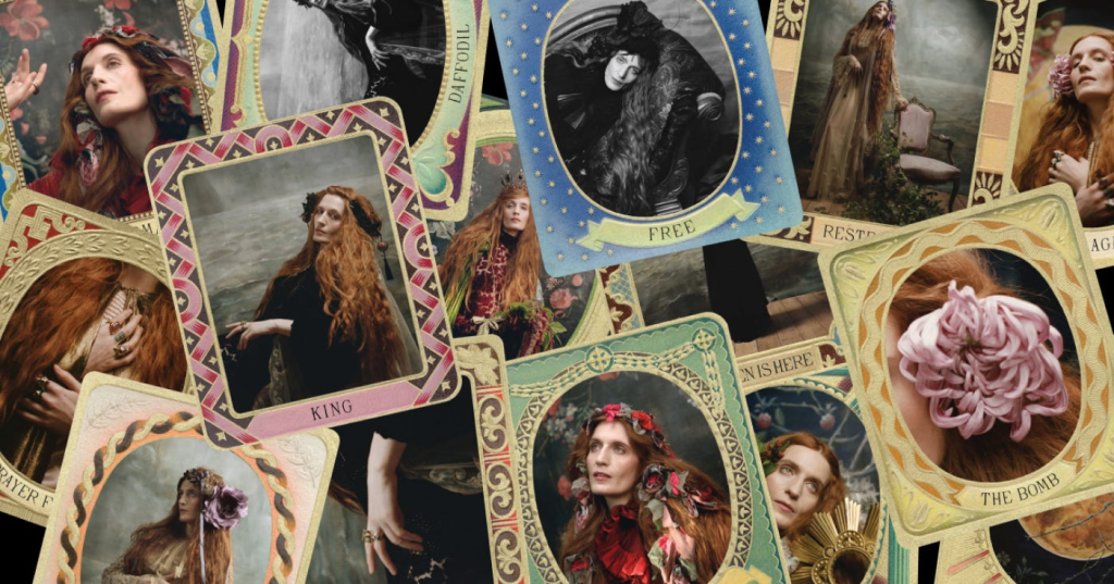Con la misma energía mística a la que nos tiene acostumbrados, Florence se pone frente a la cámara para recrear las cartas del Tarot que se usarán de portada para cada una de las canciones del álbum. Adelantándome a los acontecimientos, en su página web disponen de un Card Reader personalizado. Junto con Spotify (la magia existe, pero no tanto) te harán saber qué canción del álbum te ha escogido.